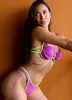 介绍 Fuchsia + Neon Yellow Half Cup 比基尼,大胆融合鲜艳的色彩。半罩杯设计增强了女性气质,而荷叶边则增添了魅力。紫红色和霓虹黄色色调营造出现代而容光焕发的外观。立即购买,以沙滩装的风格和魅力脱颖而出。