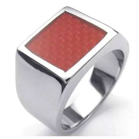 镶嵌红色碳纤维不锈钢戒指刻接受定制其他的颜色或者宝石